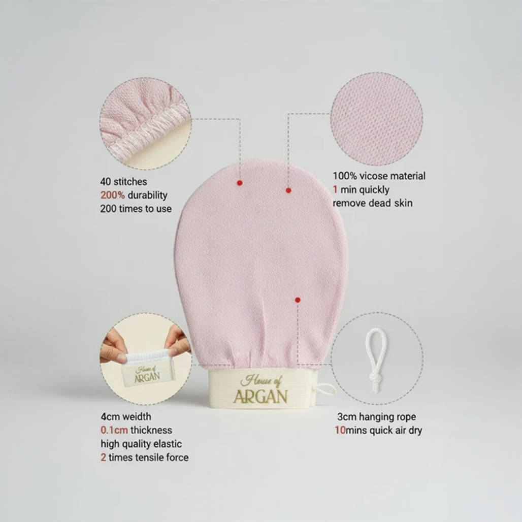 - A premium-quality Moroccan Kessa Glove made from 100% natural viscose, eco-friendly and reusable.